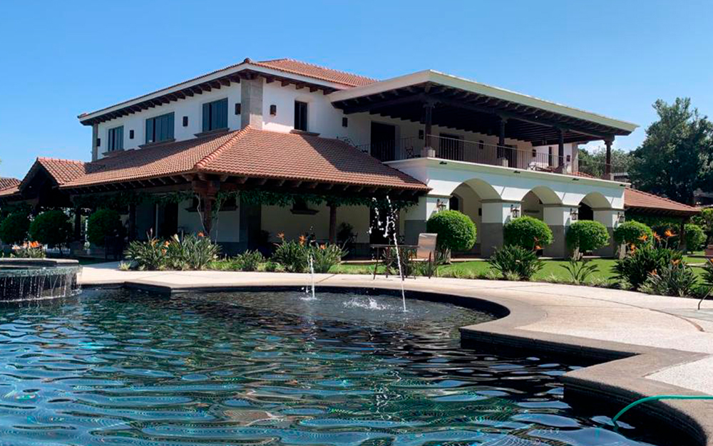 Residencia colonial con finos acabados herrajes de hierro forjado, búcaro, chimenea, terrazas españolas y amplios espacios.